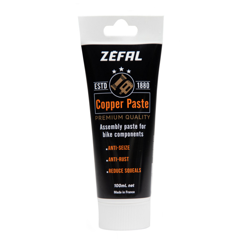 La pasta de cobre es una pasta de montaje a base de cobre. Esta pasta le permitirá montar sus componentes (pedales, tija de sillín, etc.) con total tranquilidad. Esta pasta de montaje ha sido desarrollada para evitar el agarrotamiento de dos piezas metálicas. También inhibirá los ruidos parásitos y evitará el aflojamiento. Es segura para todos los materiales de su bicicleta.